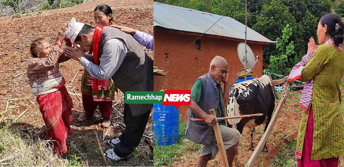 खाँडादेवी गाउँपालिकामा आर्शिवाद लिदै भोट माग्दै अध्यक्षका उम्मेदवार श्रेष्ठ