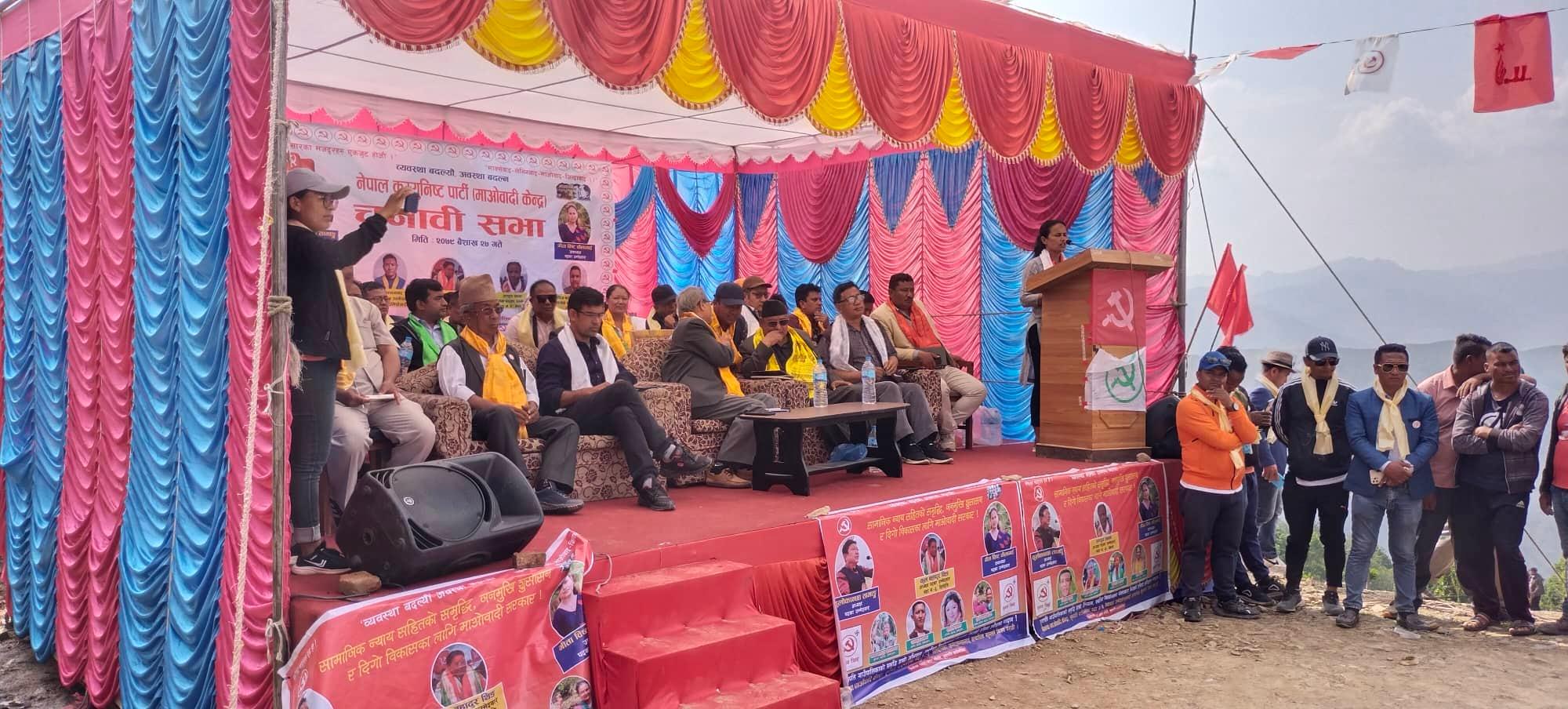 चुनावी कार्यक्रम अन्तर्गत नेकपा माओवादीले अन्तिम चुनावी सभा गाउँपालिकाको केन्द्र हिलेदेवीमा सम्पन्न गरेको छ । पाँच वटै वडामा चुनावी घरदैलो सम्पन्न गरेसँगै माओवादीले आज प्रचार प्रसारको अन्तिम दिन पालिकाको केन्द्रमा चुनावी सभा सम्पन्न गरेको हो । चुनावी सभालाई सम्बोधन गर्दै नेकपा माओवादी केन्द्रका नेता हरिबोल गजुरेलले परिवर्तनकारी शक्तिले आगामी स्थानीय तहको निर्वाचन जित्ने बताए । उनले सुनापति गाउँपालिका जनयुद्धदेखि हालसम्म कम्युनिष्टहरुको उदमस्थल भएको बताउदै स्थानीय तहको निर्वाचनमा पनि माओवादी विजयी हुने बताए ।