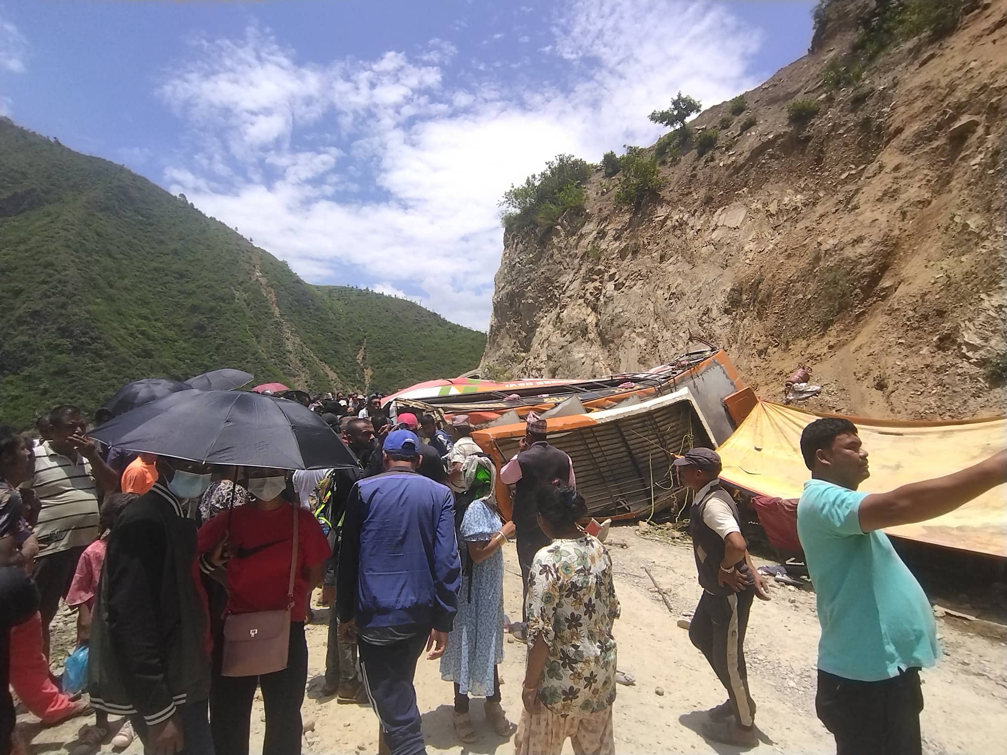 रामेछापको लुभुघाटमा बस दुर्घटनाः ९ जनाको मृत्यु, २५ जना घाइते,खोजी कार्य अझै जारी (फोटोफिचर)