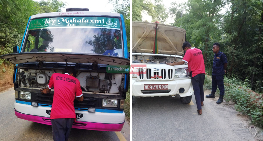 रामेछाप जिल्लाभित्र दशैको समयमा कुनै पनि सवारी दुर्घटना हुन नदिनको लागि प्रहरीले सवारीको चेकजाँच अभियान सञ्चालन गरेको छ । अधिकांश ग्रामिण सडक भएकाले सम्भावित सवारी दुर्घटना हुन नदिनका लागि यान्त्रिक अवस्था चेकजाँच गर्ने कार्यलाई अभियानकै रुपमा अघि सारेको हो । जिल्ला ट्राफिक प्रहरी कार्यालयको पहलमा मेकानिकल प्रबिधिक टिम द्वारा ५० ओटा भाडाको सवारी साधनहरुलाई यान्त्रीक परिक्षण गरीएको हो ।
