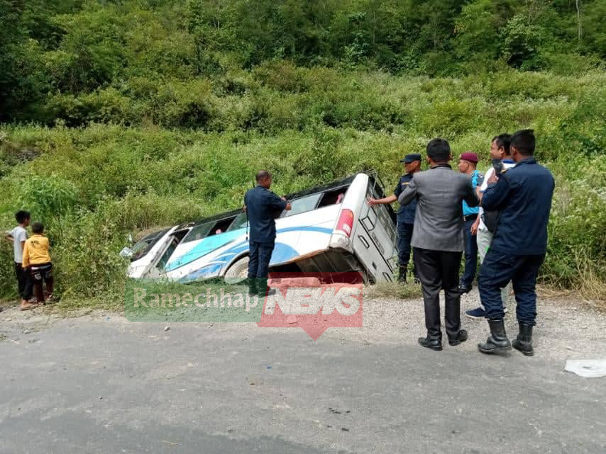 रामेछापको खाँडादेवी गाउँपालिकाबाट काठमाडौं जादै गरेको बस दुर्घटना