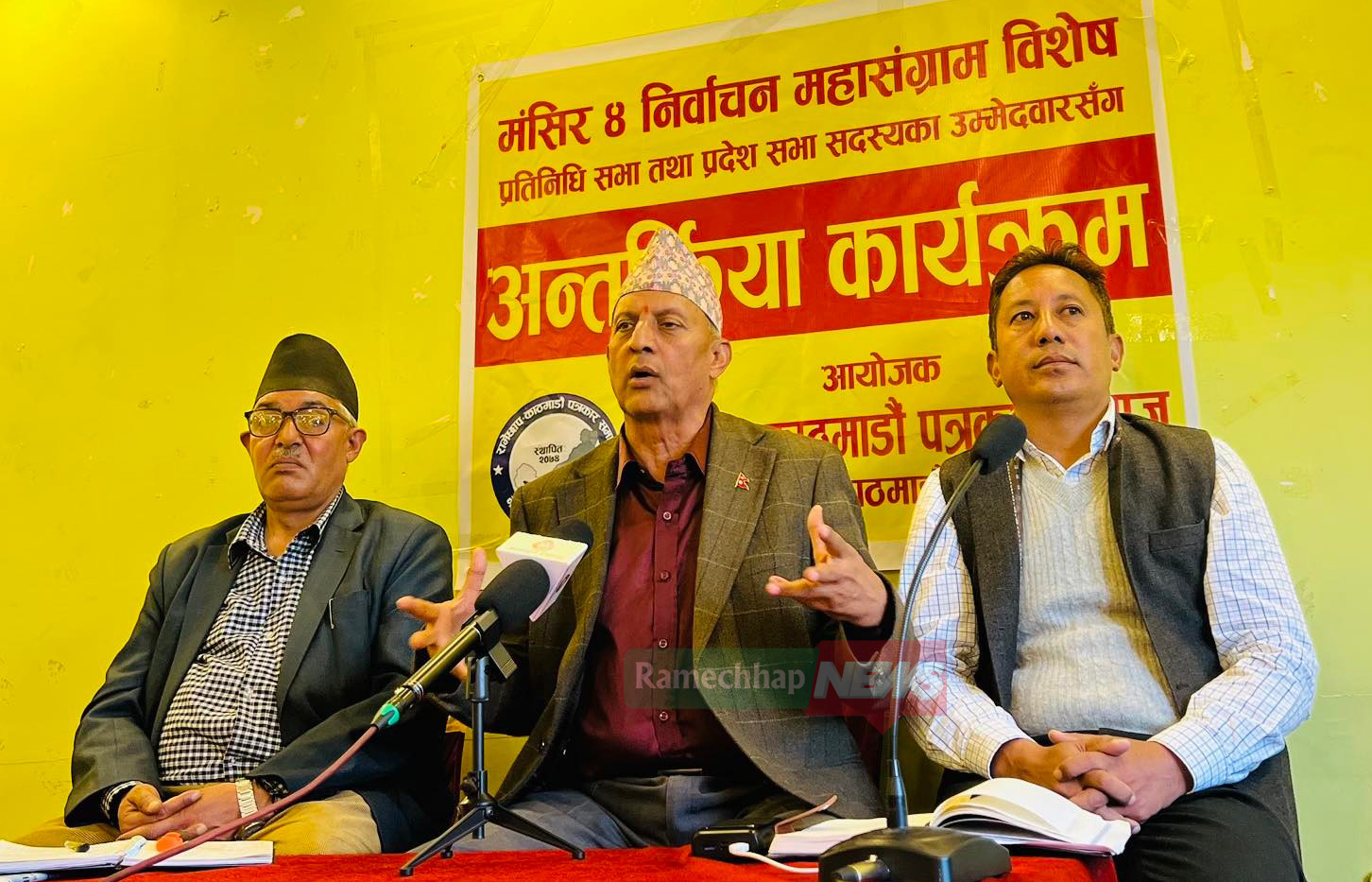 उम्मेदवारमा मैले चासो नदिएको अवस्था हो, मेरै नाममा आयो । चुनावी मैदानमा होमिए । जसको नीति, उसैको नेतृत्व भन्ने हिसाबले एमालेले भोट पाउनुपर्छ, पृथ्वीनै प्वाल परे, १९ रेक्टरको भूकम्प आए मात्रै एमाले हार्ने हो, नत्र एमालेको जित सुनिश्चित छ, उनले भने ।