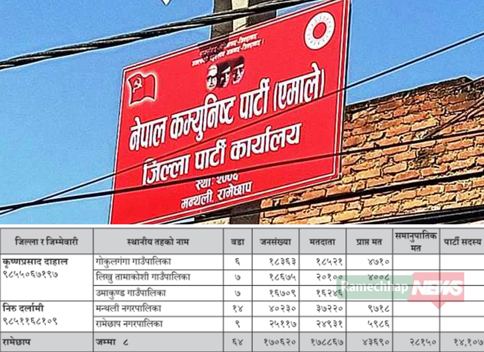 यसैबीच आठ वटा स्थानीय तह र ६४ वटा वडा रहेको रामेछापमा एमालेले तीन जना केन्द्रीय सदस्य खटाएको छ । केन्द्रीय सदस्य कपिलदेव पोखरेल, निरु दर्लामी र कृष्णप्रसाद दाहाल आठ वटा स्थानीय तहमा अभियानको नेतृत्व गर्नेछन । रामेछापमा एमालेको पार्टी सदस्यता संख्या १४ हजार १०७ जना रहेको छ ।