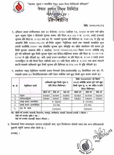 फेरि बढ्यो पेट्रोलिय पदार्थको मुल्य, यस्तो छ बढेको मुल्य (विवरणसहित)
