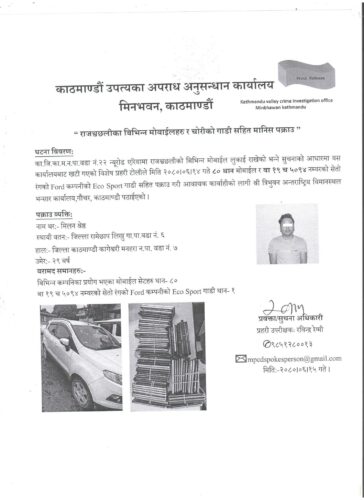 ८० वटा मोबाइल र गाडीसहित रामेछाप लिखु तामाकोसी गाउँपालिकाका श्रेष्ठ पक्राउ