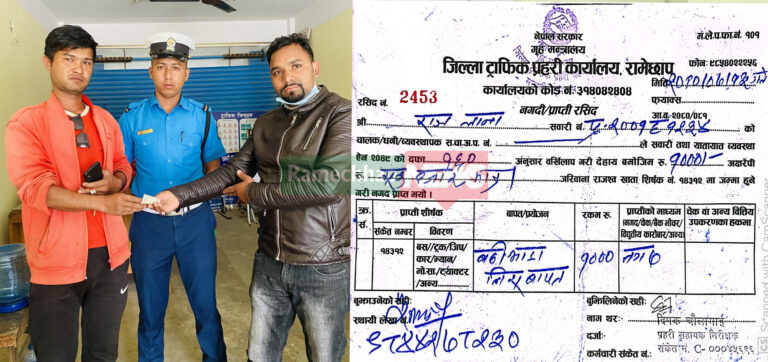 रामेछापमा बढी भाडा लिने अटो चालकलाई जरिवाना, बढी लिएको भाडा ट्राफिक प्रहरीले फिर्ता गरायो