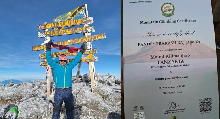 रामेछापका पाण्डेद्वारा अफ्रिकाको सर्वोच्च शिखर किलिमञ्जारोको सफल आरोहण