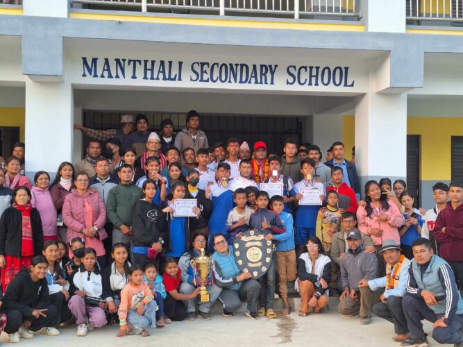 मन्थली,पुष ८ गते । रामेछापको नमूना विद्यालयको रुपमा पहिचान बनाएको मन्थली माविले यस बर्ष पनि राष्ट्रपति रनिङ शिल्ड प्रतिगोगीतामा जित हासिल गरेको छ । मन्थली नगरपालिकाको आयोजनामा शुक्रवार देखि सुरु भएको विभिन्न विधामा प्रथम हुँदै प्रतिगोगिता जितेको हो । २२ वटा विद्यालयको सहभागिता रहेको उक्त प्रतियोगिता मन्थली माविले जितेको हो । विद्यालयले यस अघि लगातार २ पटक रनिङ शिल्ड प्रतियोगिता जितको थियो । रनिङ शिल्डमा कूल ६६ वटा स्वर्ण मध्य सबै भन्दा धेरै ४७ पदक आफ्नो पक्षमा पार्दै मन्थली माविले उपाधि चुमेको हो ।