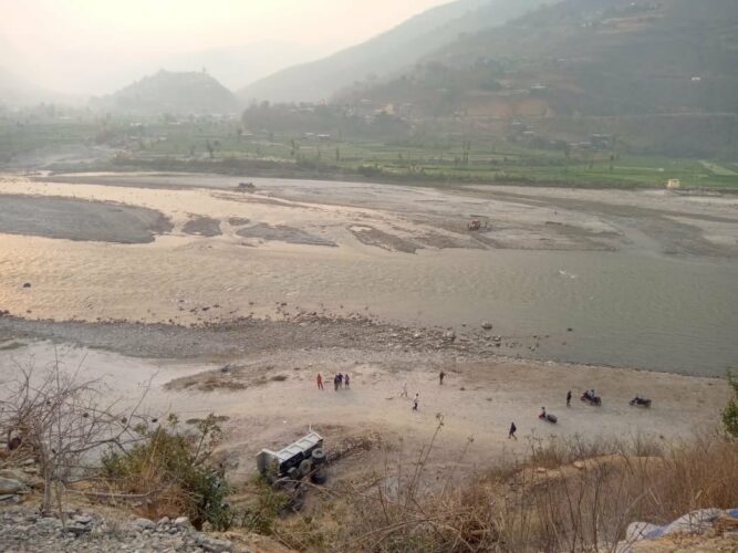 ३ वैशाख, रामेछाप । रामेछापको मन्थली नगरपालिका वडा नम्बर ७ स्थित मन्थली मुगिटार सडक खण्डमा टिपर दुर्घटना हुँदा चालकको मृत्यु भएको छ । मुगिटारबाट मन्थलीतर्फ आउदै गरेको बा.प्र.०१००६ ख ३८३९ नम्बरको बालुवा लोड टिपर सडकबाट करिब मिटर तल खसी दुर्घट्ना हुदा टिपर चालक गोकुलगंगा गाउँपालिका वडा नम्बर ३ का दिपेन्द्र भन्ने पबित्र बस्नेतको मृत्यु भएको हो ।