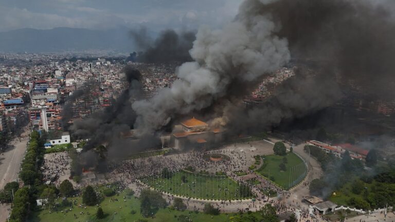 प्रदर्शनकारीले जलाए संसद भवन