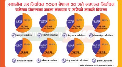 २ जेठ, रामेछाप । रामेछाप जिल्लामा २०७४ सालको स्थानीय तहको निर्वाचन भन्दा सात प्रतिशत कम