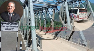 स्नेहा सिलवाल १३ साउन, रामेछाप । रामेछाप–सिन्धुली जोडने खैरेनीघाटस्थित सुनकोसी नदीको पुल निर्माण सम्पन्न भएर