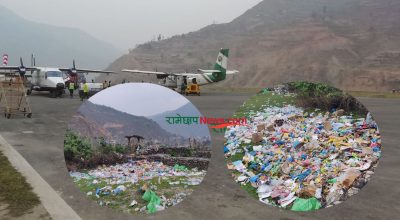 १९ वैशाक, रामेछाप । मन्थली विमानस्थलको धावन मार्गसँगै फोहोरको डंगुर फैलिदा विमान अवतरण र उडानमा