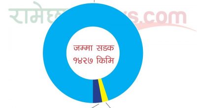 सुनिता तामाङ २७ माघ, रामेछाप । रामेछाप जिल्लामा १ हजार ४ सय २७ किलोमिटर सडक