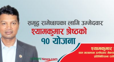रामेछापको प्रतिनिधिसभाका लागि बाम गठबन्धनका साझा उम्मेदवार नेकपा माओवादी केन्द्रका पोलिटब्यूरो सदस्य श्याम कुमार श्रेष्ठ