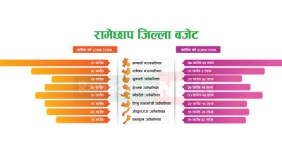 १७ जेठ, काठमाडौं । रामेछाप जिल्लाको आठ वटा स्थानीय तहमा यस बर्ष गत आर्थिक बर्ष