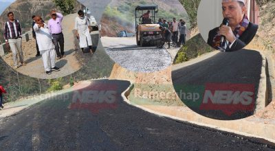 ३० वैशाख, रामेछाप । सुनापती गाउँपालिकाभित्र पहिलो पटक सडक कालोपत्रको गर्ने काम सुरु भएको छ