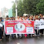 ३१ साउन, काठमाडौं । चिकित्सा क्षेत्रमा रहेको विकृतिको विरुद्ध अनशनरत डा. गोविन्द केसीको समर्थनमा रामेछापवासी युवाहरुले दबाबमूलक र्याली निकालेका छन् । चिकित्सा क्षेत्रमा देखिएको समस्या समाधान गर्नको लागि भन्दै डा.