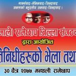 २९ चैत, रामेछाप । नेकपा एमाले रामेछापले पार्टीबाट निर्वाचित जनप्रतिनिधिहरुको भेला बोलाएको छ । अहिलेको राष्ट्रिय राजनीतिक र पार्टीबाट निर्वाचित जनप्रतिनिहरुले खेल्नु पर्ने भूमिकाको विषयमा निर्देशन दिए पार्टीले जनप्रतिनिधिहरुको भेला