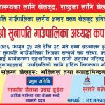 १३ फागुन, रामेछाप । सुनापती गाउँपालिकामा दोसो सुनापती गाउँपालिका अध्यक्ष कप हुने भएको छ । फागुन २५ गतेदेखि २८ गतेसम्म अध्यक्ष कप हुन लागेको हो । सुनापति गाउंपालिका खेलकुद विकास
