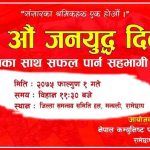 २९ माघ, रामेछाप । पार्टी एकीकरण भएपछि नेपाल कम्युनिष्ट पार्टीले पहिलो पटक रामेछापको सदरमुकाम मन्थलीमा जनयुद्ध दिवस मनाउने भएको छ । नेकपा रामेछापले मन्थलीमा फागुन १ गते २४ औं जनयुद्ध
